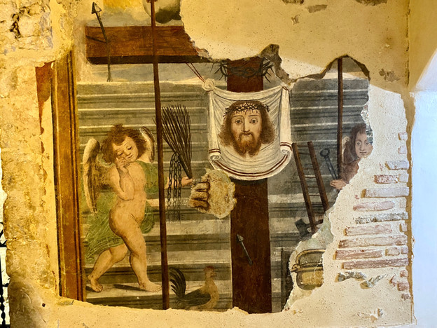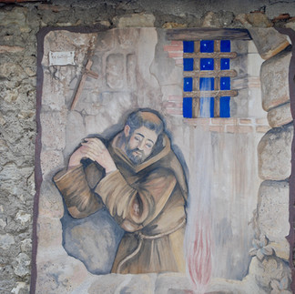Als je het Santuario bezoekt, moet je eigenlijk ook even tijd maken voor het nabijgelegen Greccio. Dat hoort er gewoon bij. Niet dat er nu zoveel te zien is, en eerlijk gezegd maakt het plaatsje ā hoewel het op de lijst van borghi più belli van ItaliĆ« staat ā een nogal afgebladderde indruk. Natuurlijk wil het, bedreigd met leegloop, een graan meepikken van de Franciscuscultus, maar dat lijkt helaas niet zo te lukken. Ontroerend zijn dan wel de vele verwijzingen naar de heilige uit Assisi die je er aantreft, zoals de gevelschilderingen. Geen hoogstaande kunst, en de meeste werkjes zijn verweerd en verbleekt, maar voor Franciscus, liefhebber van armoede, zouden ze vast mooi genoeg geweest zijn.